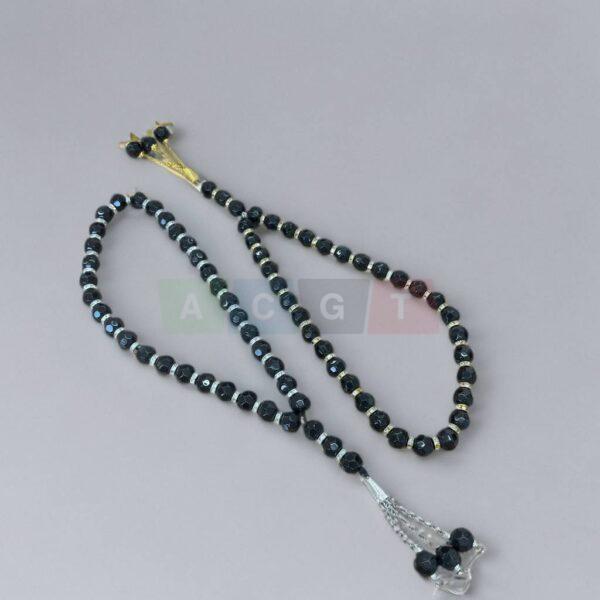 مسبحة كرستال سوداء بفواصل خرز