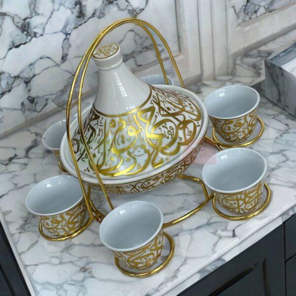 حمالة ضيافة مع فناجين قهوة مرسمين